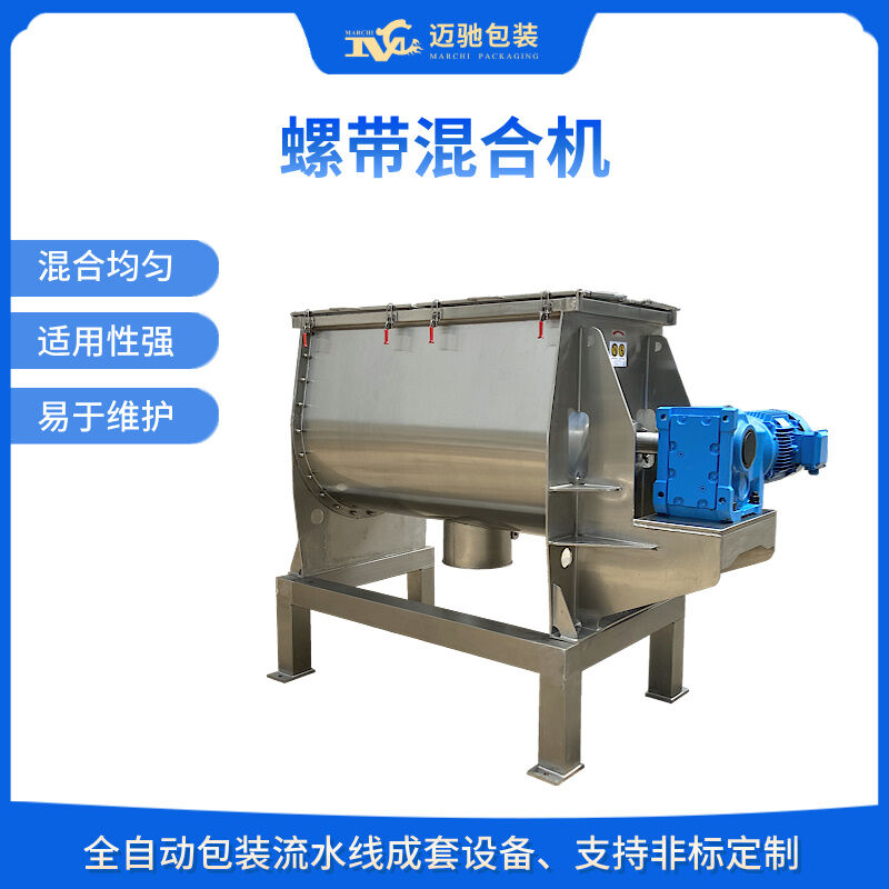 卧式螺带混合机适用于粉料与粉料、颗粒与粉料、粉料与少量液体的混合,广泛应用于医药、食品、饲料、化工、塑料及建材等行业,可以按GMP标准制作。该机对混合物适应性广,对粘性物料能混合均匀,对颗粒物料能尽量保持颗粒的完整,对配比差异达到1:1000~10000的物料能较好的混合。本机还可以根据用户的要求制作加热、冷却、正压、真空等各种特殊形式。